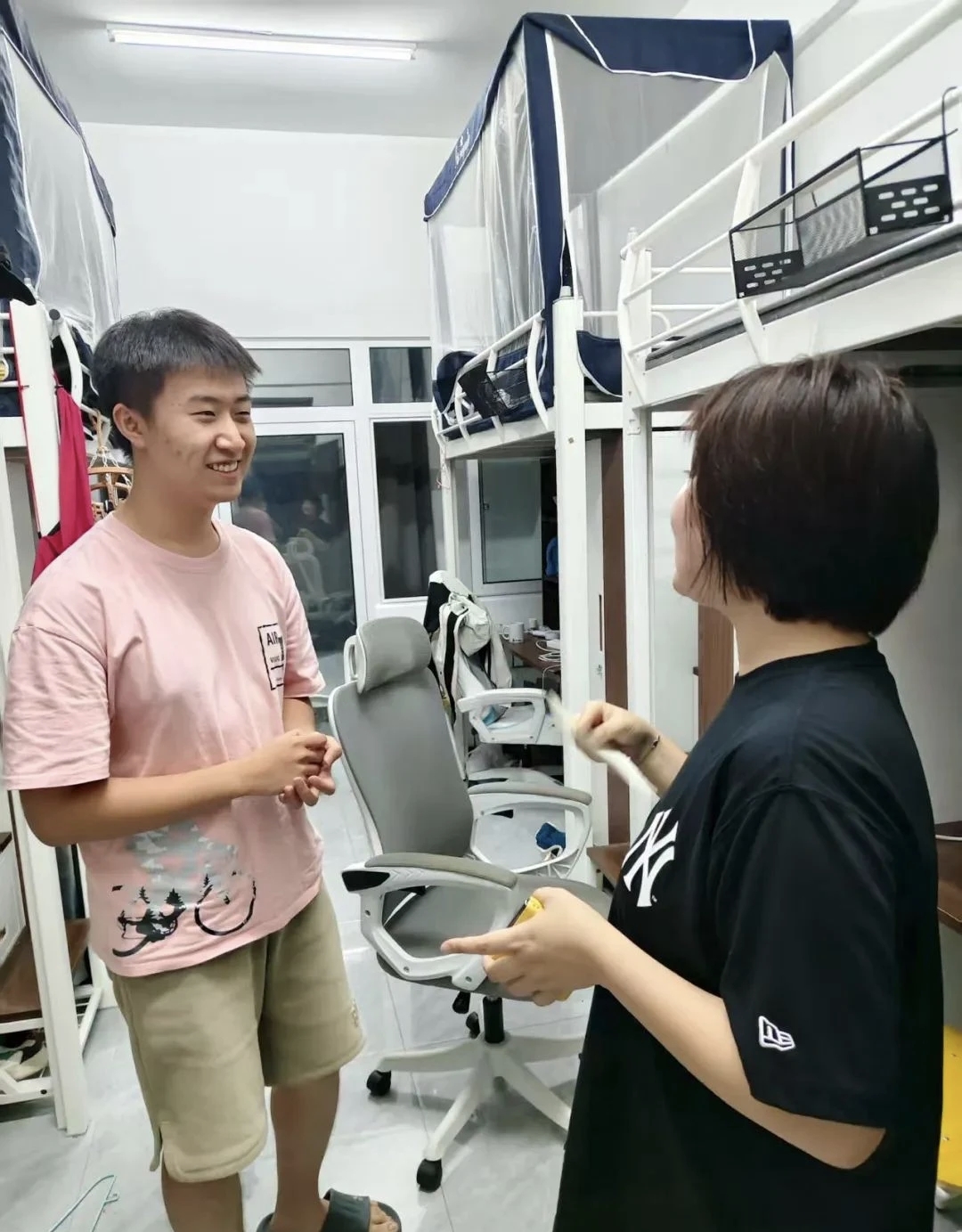 针对个别寝室存在的杂物堆积、作息不规律等问题,辅导员当场提出具体整改建议并督促调整,并结合典型安全案例,再次强调暑期用电规范、人身防护等注意事项,引导学生深刻树牢“安全第一”理念,共同守护安全有序的校园环境。