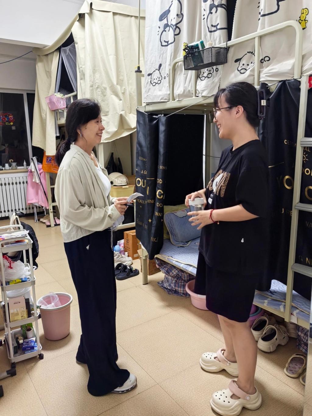 查寝过程中,辅导员们与学生面对面交流,详细询问暑期学习计划、实习进展及日常生活状况,耐心倾听大家在住宿条件、饮食保障、心理状态等方面的诉求,对学生提出的疑问当场解答、难题逐一记录协调,让留校学子深切感受到“离家不离校,留校如在家”的温暖与归属感。