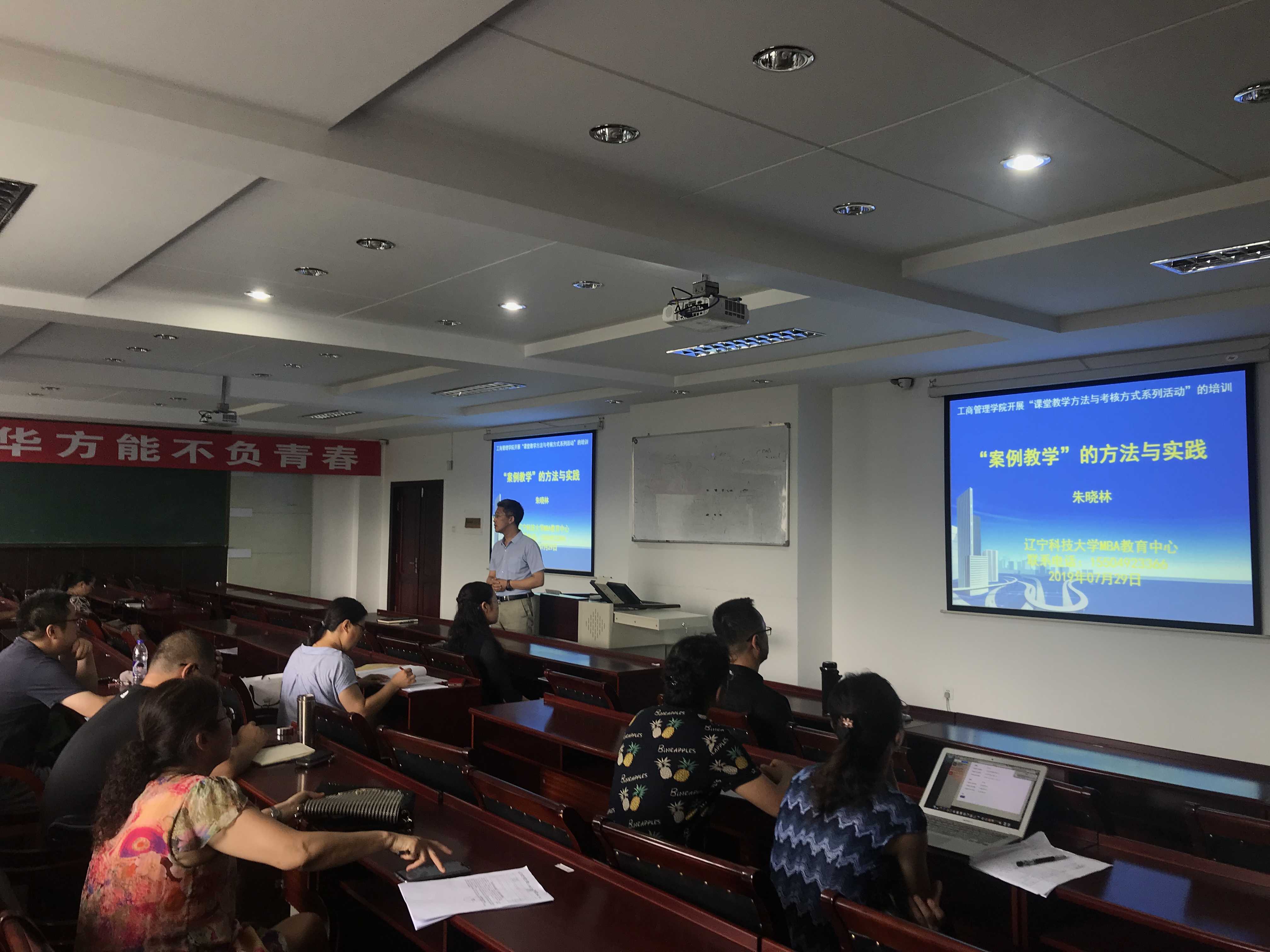 7月29日上午,工商管理学院举行了“课堂教学方法与考核方式”系列培训活动的第一期——《案例教学的方法与实践》。本期主讲嘉宾是学院副院长朱晓林教授。朱晓琳副院长主管MBA教学,对案例教学的研究与实践经验丰富,成果突出,她编写的案例已经入选中国管理案例共享中心案例库。会议由教学院长金玉然主持。学院全体任课教师参加。