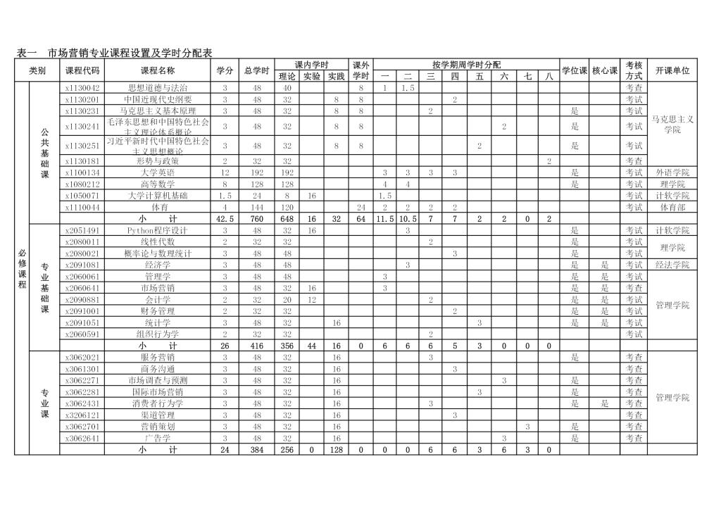 市场营销专业培养方案