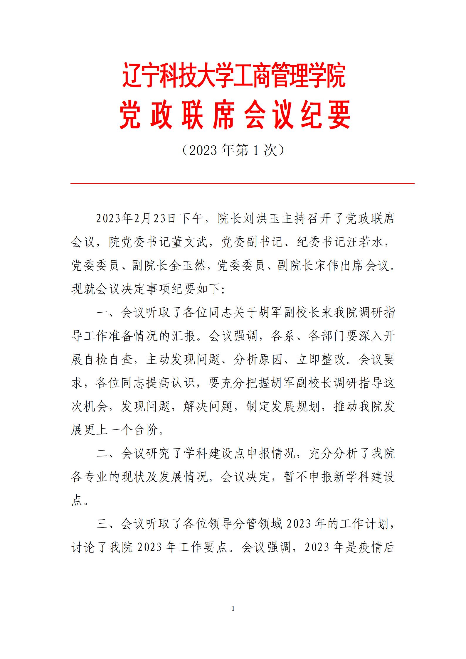 买球赛的网站工商管理学院党政联席会议纪要(2023年第1次)