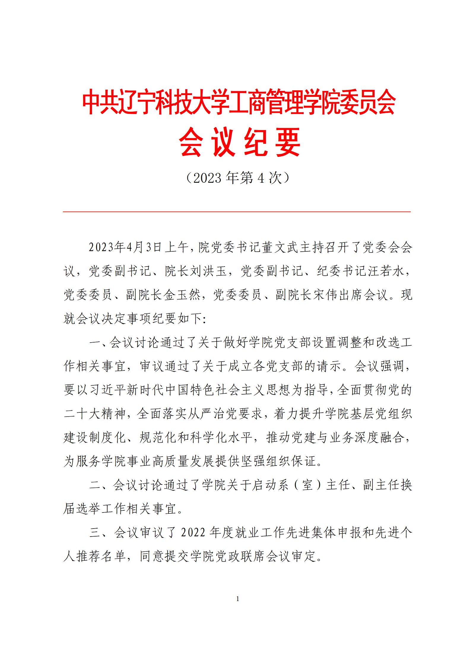 中共买球赛的网站工商管理学院委员会会议纪要(2023年第4次)