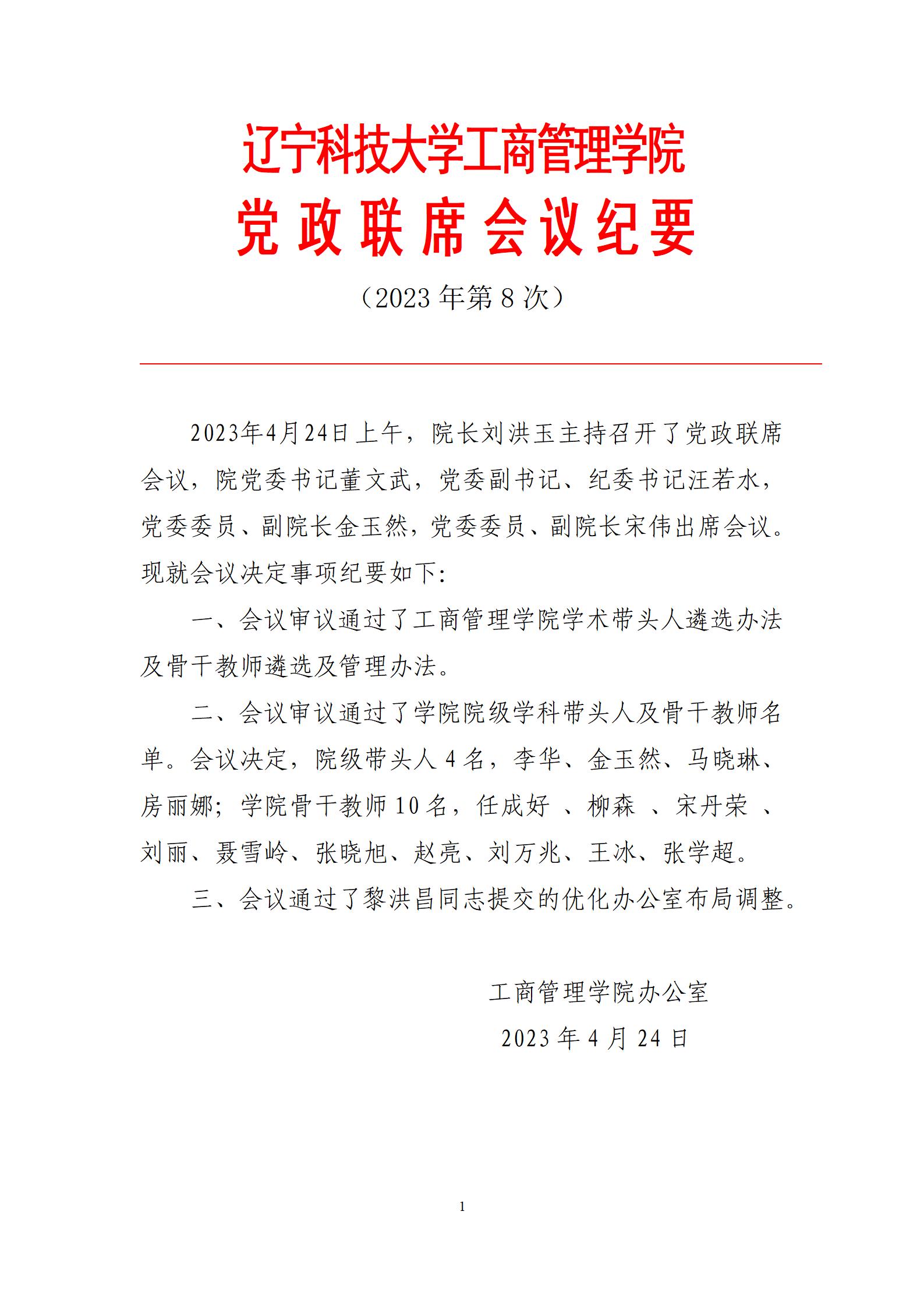买球赛的网站工商管理学院党政联席会议纪要(2023年第8次)