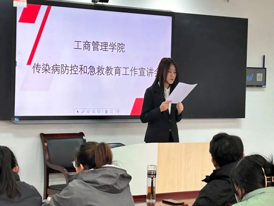 2月27日下午,工商管理学院传染病防控宣讲会于明信楼B511召开,校新时代大学生理论宣讲团成员蒋欣妤担任本次活动宣讲员。