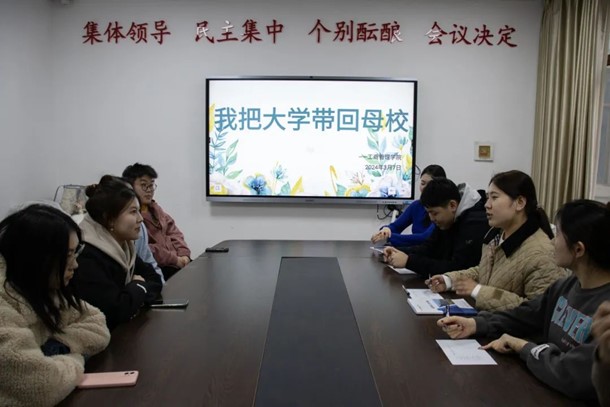 工商管理学院于3月7日在明信楼B407会议室召开了“我把大学带回母校”社会实践答辩会。院团委副书记刘宁,院社团管理中心负责人张春豫,学生代表张翀赫、周子仪、齐婧伊参会并担任本次答辩会评委。本次答辩会共有7个团队,每个团队选一位成员采取PPT展示的形式进行汇报,各团队通过抽签确定答辩顺序。