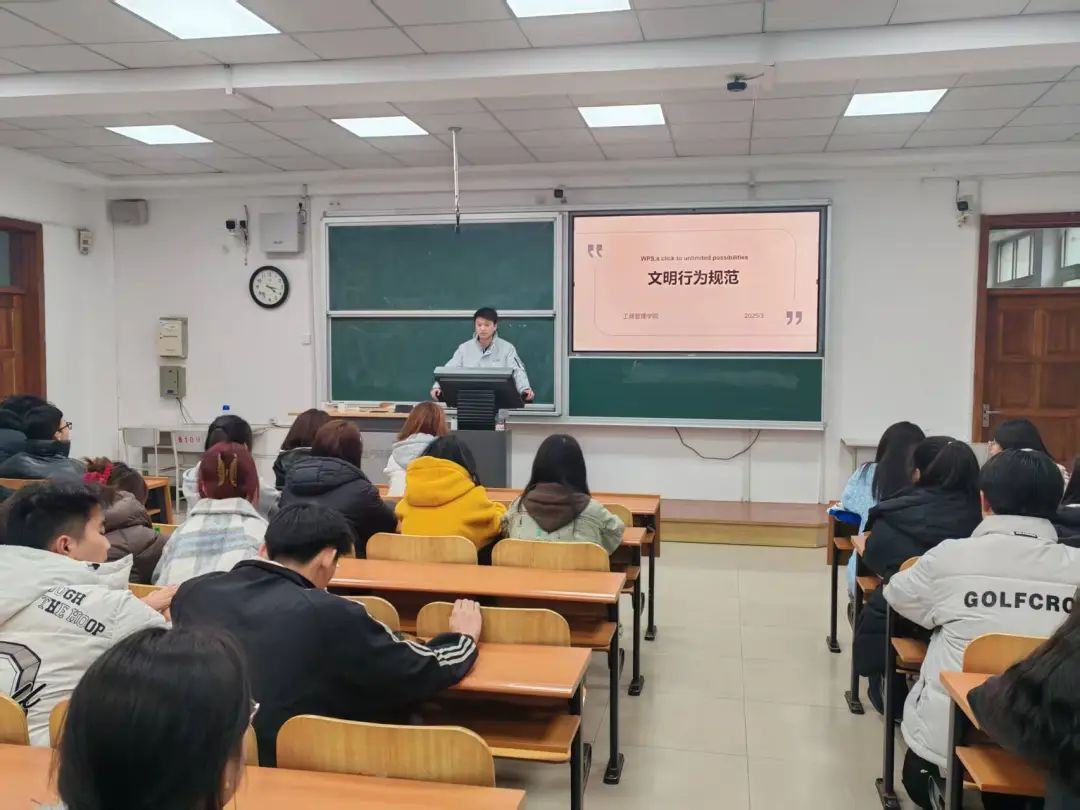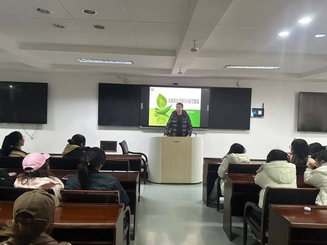 “文明行为规范” 主题班会持续推进 “好习惯工程” 系列活动。学院加强对学生日常行为规范的教育,引导学生杜绝在教学楼、图书馆等建筑物内吸烟,引导学生树立正确的恋爱观,做到举止文明。在课堂纪律方面,要求学生严格遵守,不迟到、不早退,不在上课期间玩手机或接打电话,不做与课堂无关的事,不能将早餐带进教学楼。通过这些举措,学院营造了良好的学习和生活氛围,促进学生养成良好的行为习惯。
