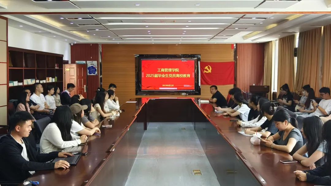 6月13日,工商管理学院组织开展2025届毕业生党员离校教育活动。学院本科生、研究生共50名毕业生党员全部参加,院党委书记田树学、党委副书记汪若水出席活动。