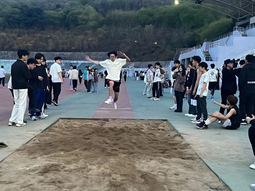 带着一往无前的勇气全力奔跑,倾尽所有的力气奋力起跳。带起阵阵的微风,扬起胜利的曙光。空中完美的弧线是青春的风彩!也是荣誉的诞生