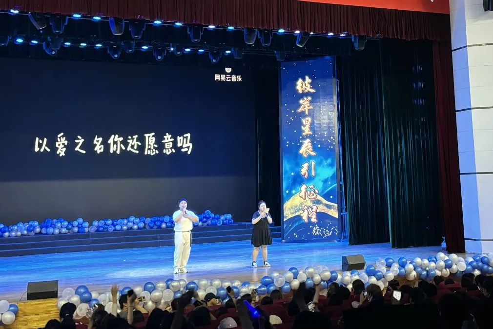 材冶学院《最后一页》《那些年》倾诉对校园生活的眷恋。笑琢俱乐部《成长的烦恼》以幽默引发共鸣,《万松书院》表演生动吸睛赢得全场掌声;管理学院《Yes! OK!》舞出青春朝气,汀兰民乐社《权御天下》奏响壮志豪情。最后,教师献唱送祝福,全场共唱《重返十七岁》,在对往昔的怀念与未来的期许中,将晚会气氛推向高潮,为青春岁月留下温暖而难忘的注脚。