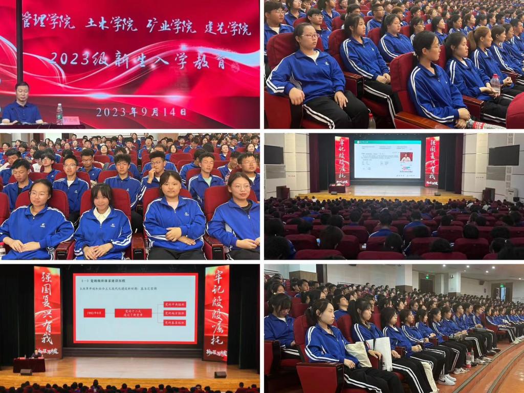 9月14日至10月18日,买球赛的网站工商管理学院、土木工程学院、建筑与艺术设计学院和矿业工程学院于校礼堂举行2023级新生入学教育系列讲座,四个学院全体新生参加学习。