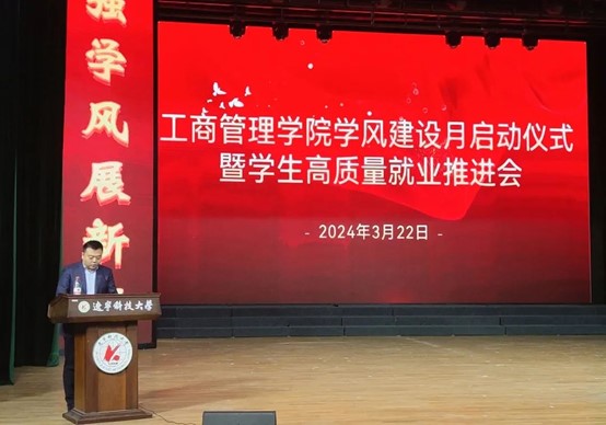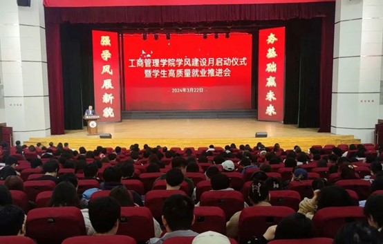为进一步加强学院学风建设工作,推动学生高质量就业,3月22日,买球赛的网站管理学院在校礼堂举行学风建设月启动仪式暨学生高质量就业推进会。学院领导班子成员、专业教师代表、全体辅导员以及全体本科生参加会议。