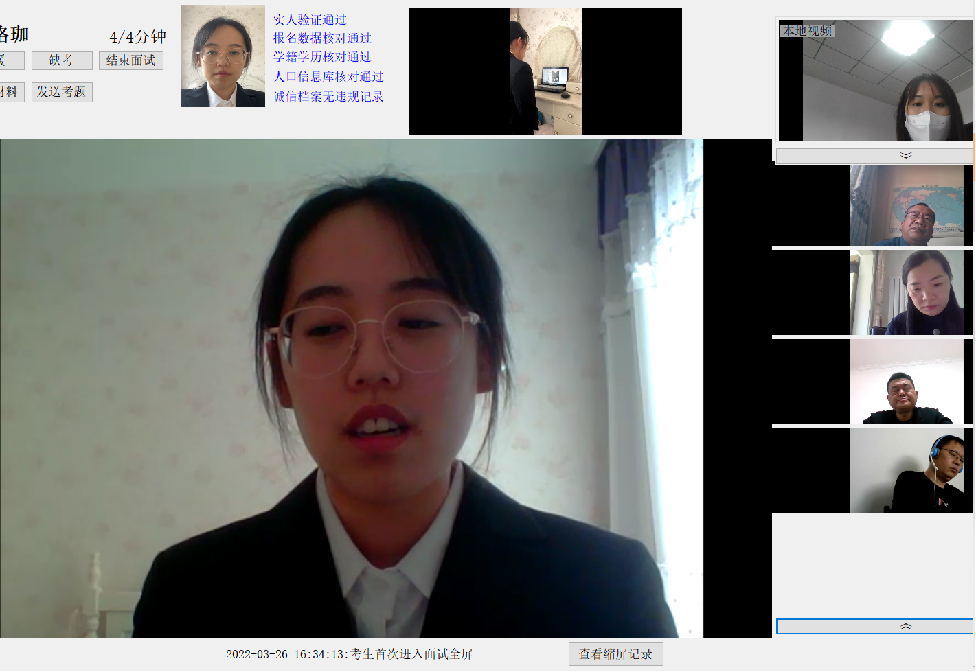 3月26日上午,面试考官、小组秘书、巡考领导及相关工作人员早早进入网络考场,以饱满的热情投入到紧张的面试中;各位考生也提早做好了准备,自述过程一丝不苟、问题回答严谨认真;评委组成员对每位考生的个人思想政治、综合素质及英语听说能力等进行了全方位、多层次、多元化的交流与考评。整个面试过程规范顺畅,充分展示了管理人的良好精神风貌。