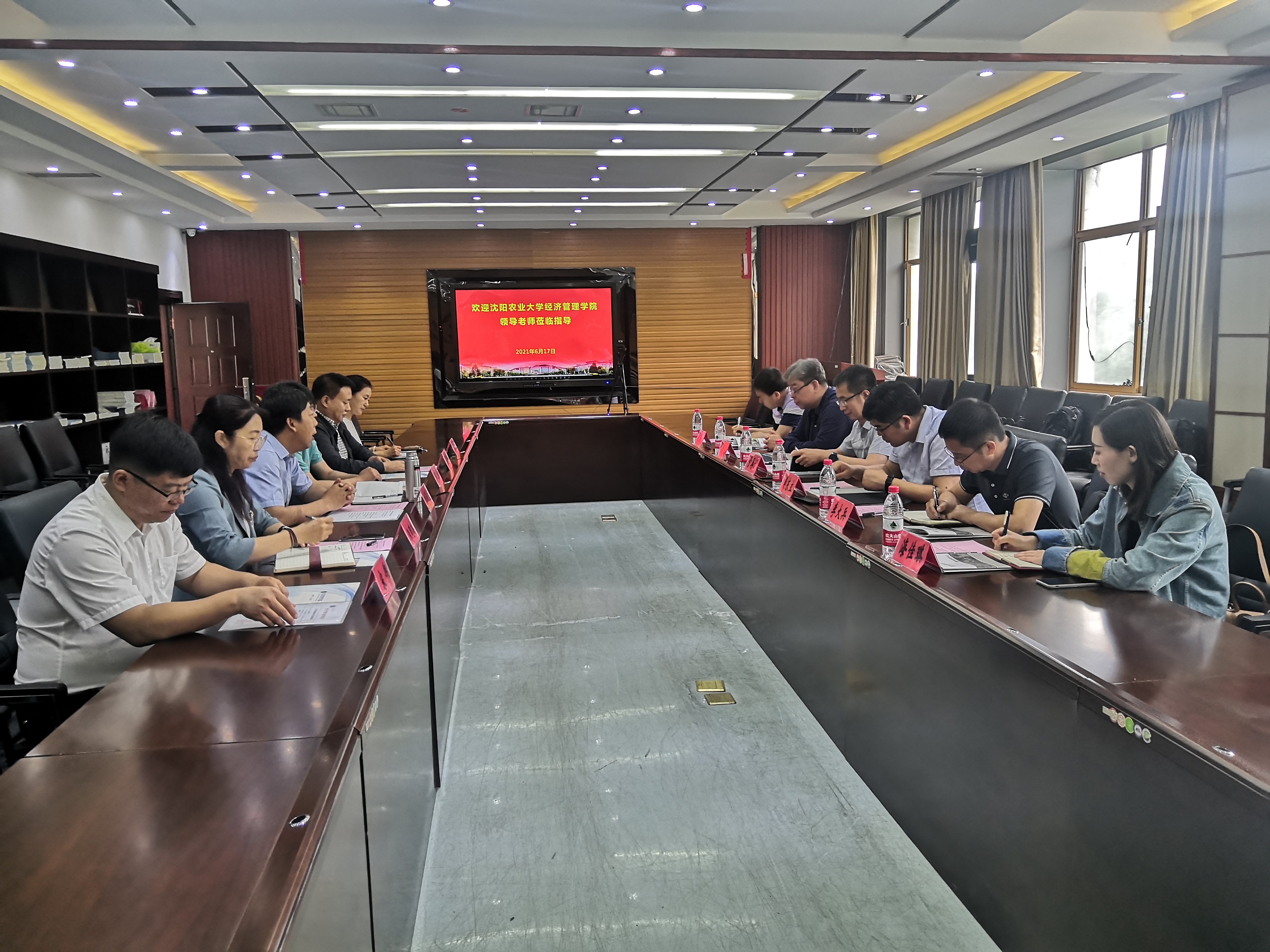2021年6月17日上午,沈阳农业大学经济管理学院党委书记景再方、院长吴东立一行六人来学院交流调研。工商管理学院党委书记、MBA教育中心主任刘洪玉,院长李天柱,副院长朱晓林,副院长张德超参加了交流座谈,并陪同客人参观了MBA教育中心。