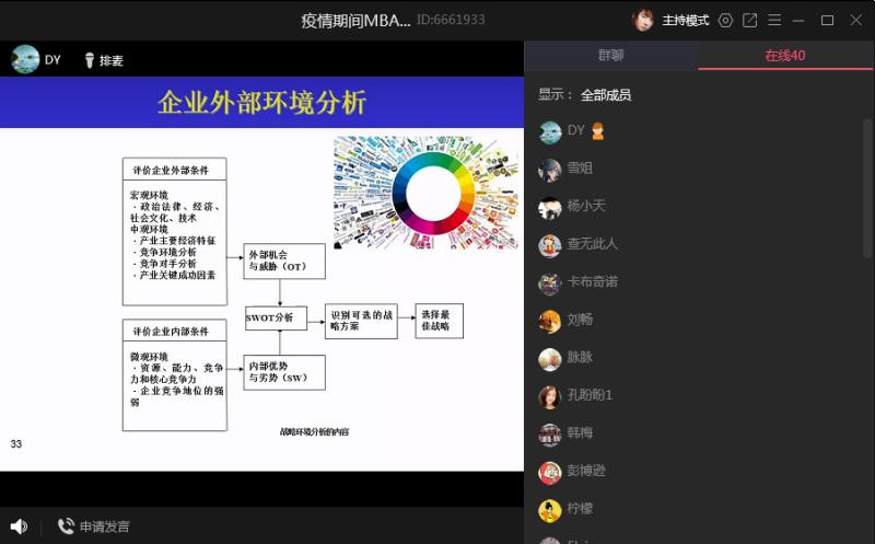 3月14日,线上教学在学院的周密部署和安排下,拉开了序幕。组织行为学、运营管理、管理综合案例、战略管理四门课程有序展开,任课老师化身“闪亮新主播”,精心准备了内容丰富、生动有趣的线上教学课程,打造了更加精彩的MBA课堂。学员们认真聆听、积极参与,展现了19级同学新学期的新风貌。