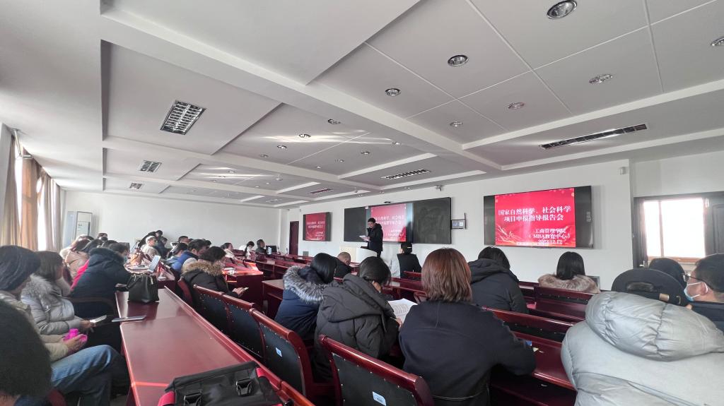 为做好国家自然科学、社会科学项目申报工作,进一步提升申报质量和立项率,2023年12月12日,工商管理学院(MBA教育中心)在明信楼B511室召开了国家自然科学、社会科学项目申报指导报告会,特邀沈阳工业大学管理学院张青山教授作“国家基金项目申请书的撰写”专题指导报告,学院全体专任教师参加会议。