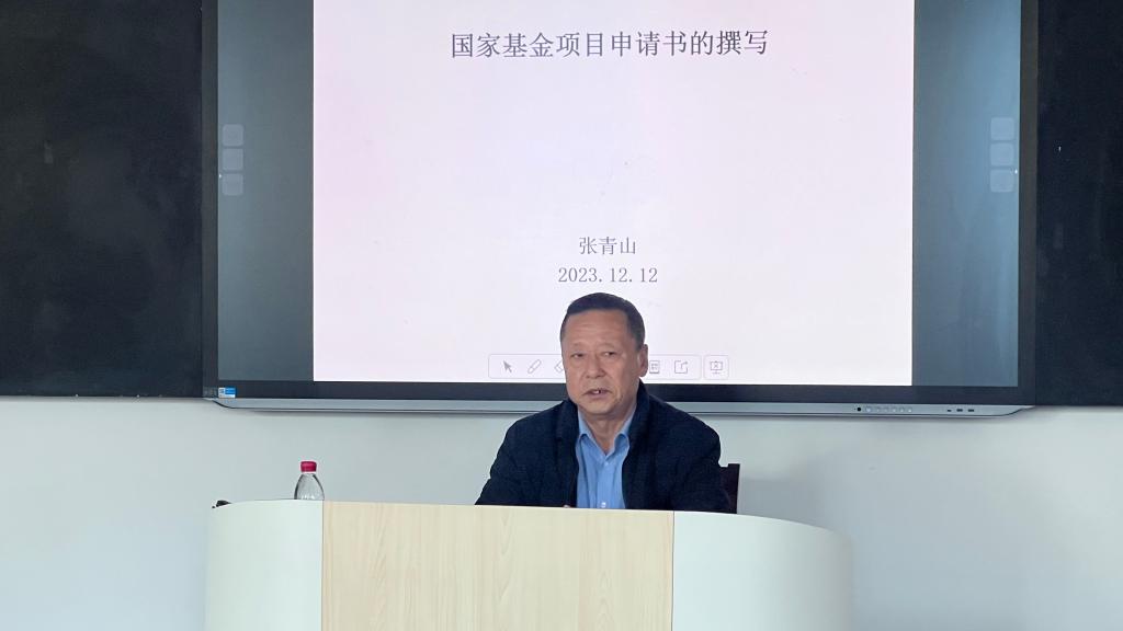 报告会上,张青山教授从申请国家级课题的重要性展开,分别从重点评审、所属学科和具体选题等方面进行了介绍。他强调,老师们要充分了解学术前沿,不断开阔科研视野,持续创新研究渠道,坚持树立科研自信。随后,他围绕国家自然科学“基本信息表”、课题设计论证、研究基础、经费概算等四个部分,对国家基金项目申请书的撰写工作进行经验交流与指导。