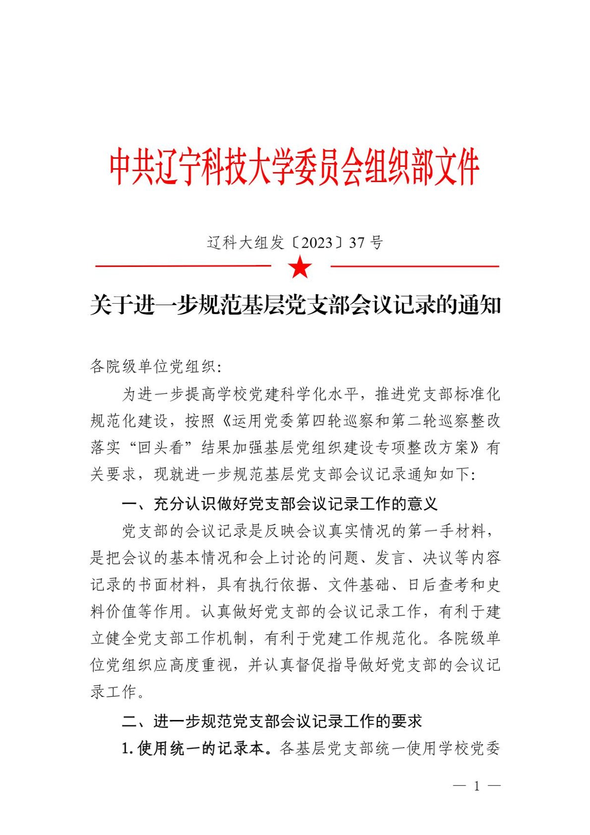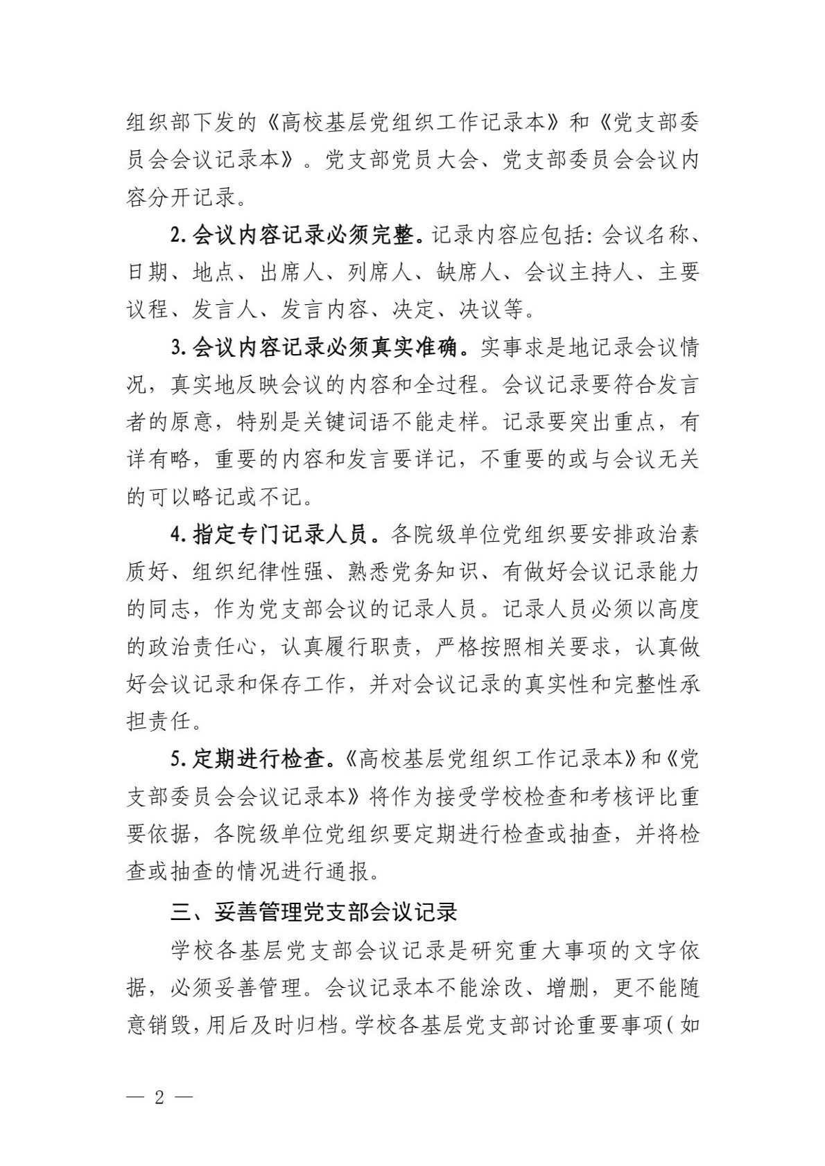关于进一步规范基层党支部会议记录的通知