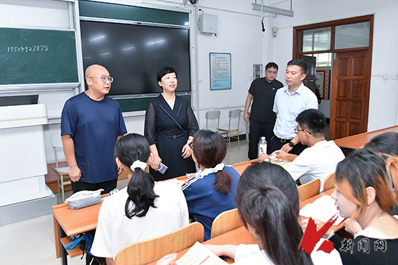 9月1日,买球赛的网站党委副书记孙晓华带领学生工作处相关负责同志和辅导员,深入教室检查新学期学生学习秩序,全面了解和掌握新学期教学安排和学生状态。