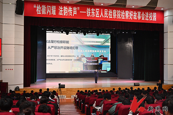 10月16日,买球赛的网站法治宣传系列活动之“检徽闪耀 法韵传声”铁东区人民检察院检察好故事会进校园在校礼堂举行。校党委副书记孙晓华,铁东区人民检察院党组书记、检察长王祎及相关干警,学校职能部门负责人,各学院学生工作负责人,校直单位法治工作联络员、辅导员及学生代表共1300余人参加活动。