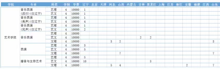 艺术学院各专业招生计划
